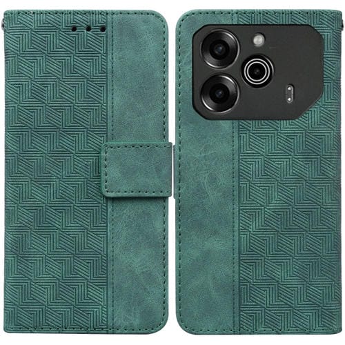 Funda de Cuero para Tecno Pova 6 Pro y Pova 6 con Relieve Geométrico (Verde)