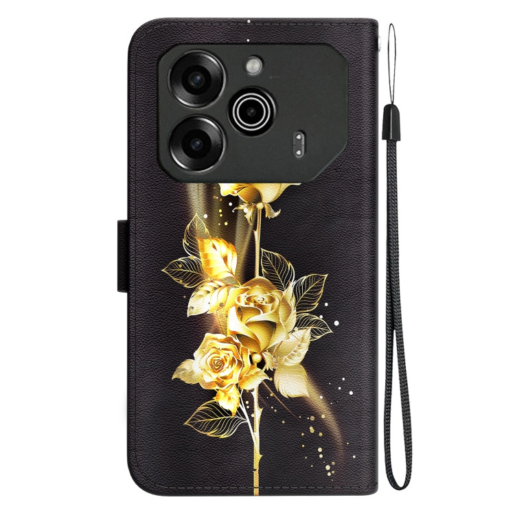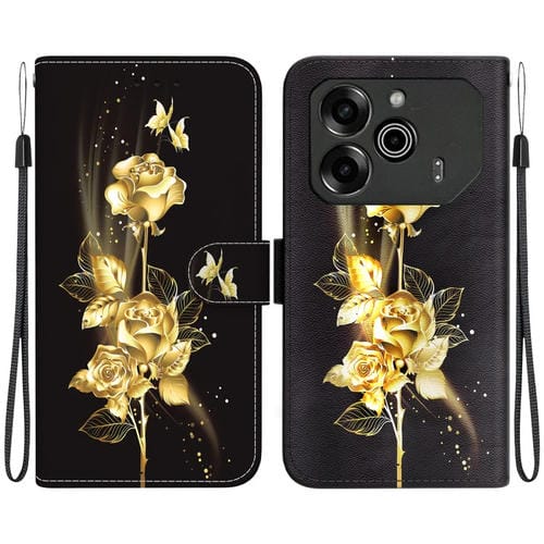 Funda para Tecno Pova 6 Pro y Pova 6 de Cuero con Dibujo Coloreado y Textura de Cristal (Mariposa Dorada Rosa)