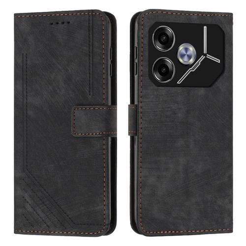 Funda de Cuero para Tecno Pova 6 con Patrón de Rayas y Cordón Largo (Negro)