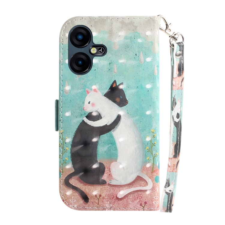 Funda de Cuero para Tecno Pova Neo 3 con Tapa Horizontal y Diseño 3D (Gato Blanco y Negro)