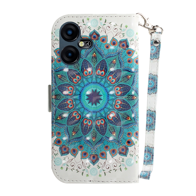 Funda de Cuero para Tecno Pova Neo 3 con Tapa Horizontal y Diseño 3D (Guirnalda de Pavo Real)