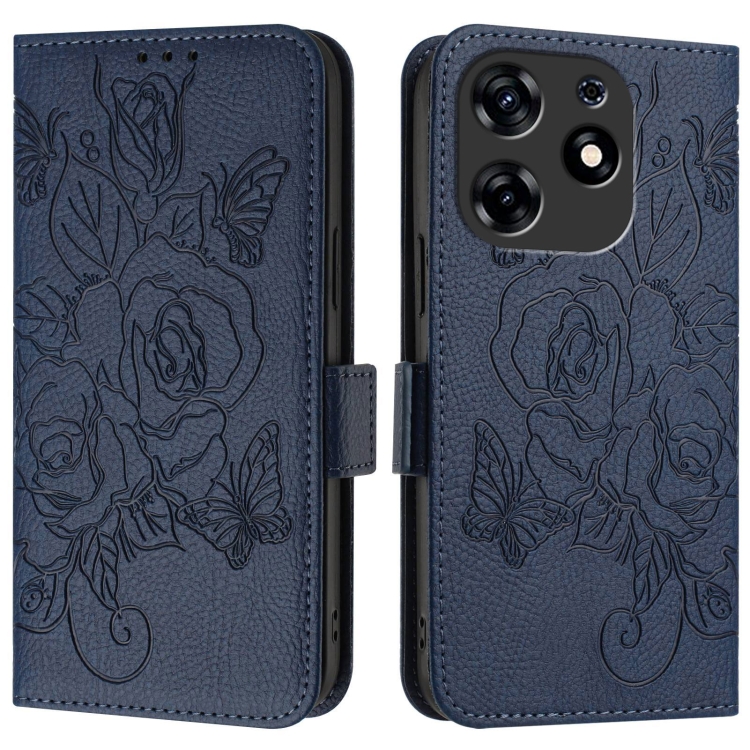 Estuche para Tecno Spark 10 Pro Magic Magenta de Cuero Antirrobo RFID con Relieve Rosa (Azul Oscuro)