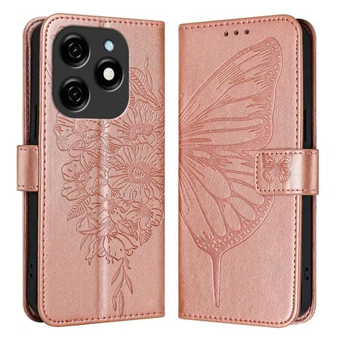 Funda de Cuero para Tecno Spark 20 con Mariposa En Relieve (Oro Rosa)