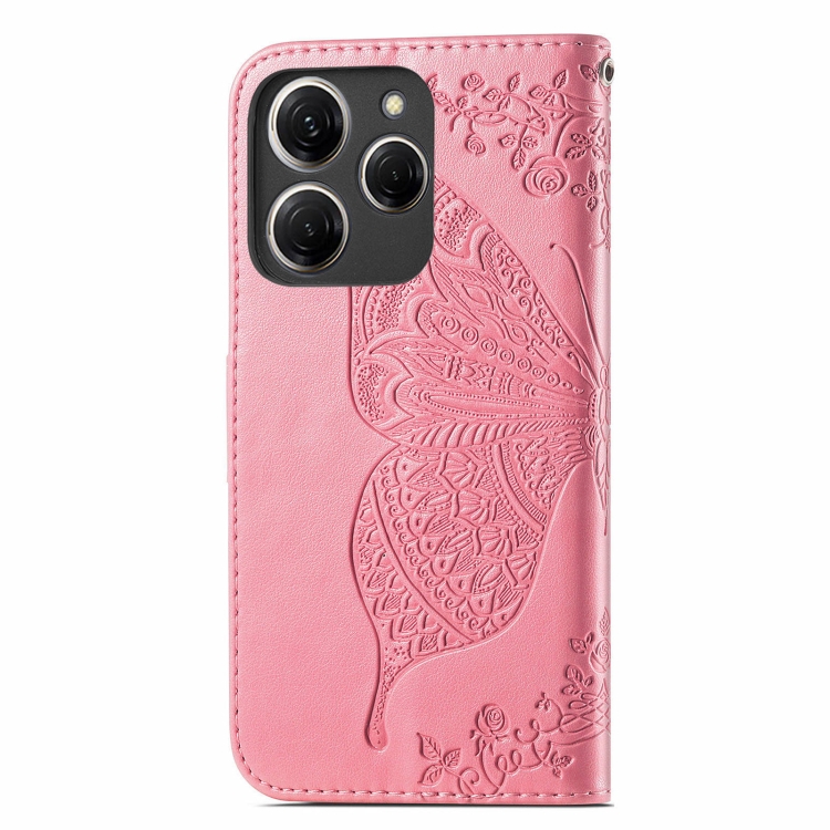 Funda de Cuero para Tecno Spark 20 Pro Butterfly Love Flower en Relieve (Rosa)