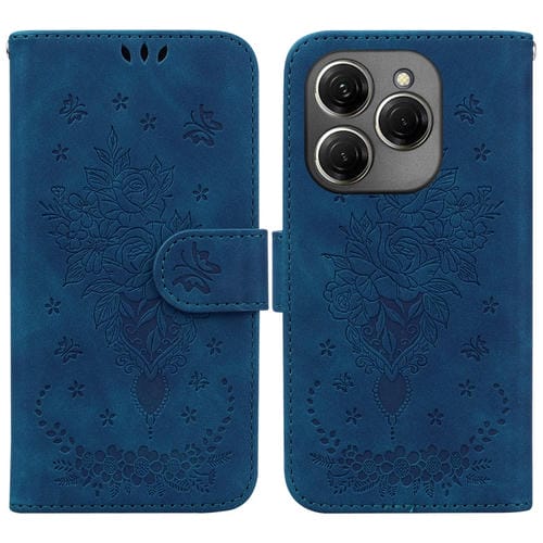 - 1x Funda de Cuero para Tecno Spark 20 Pro Butterfly Rose (Azul)