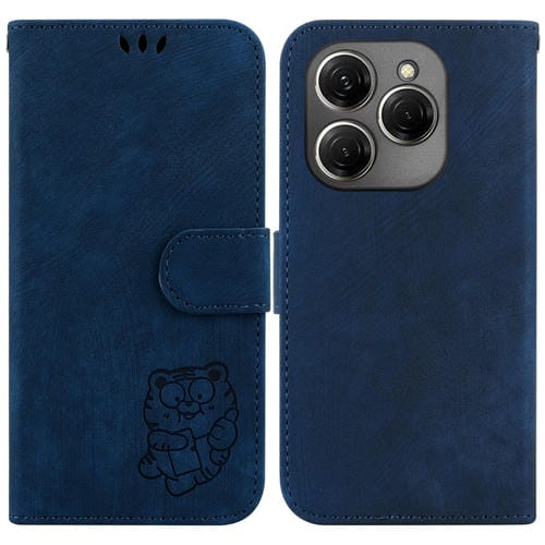Funda de Cuero en Relieve para Tecno Spark 20 Pro Little Tiger (Azul Oscuro)