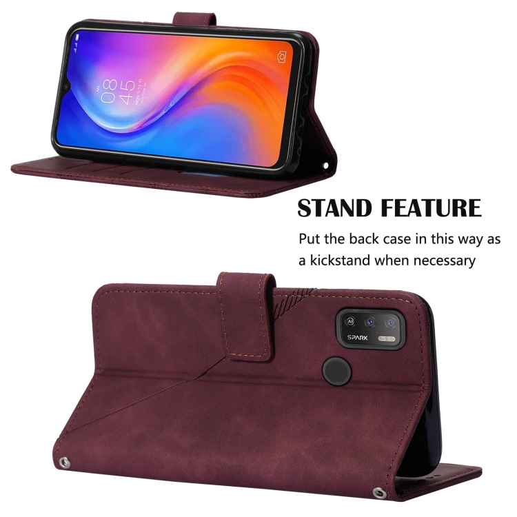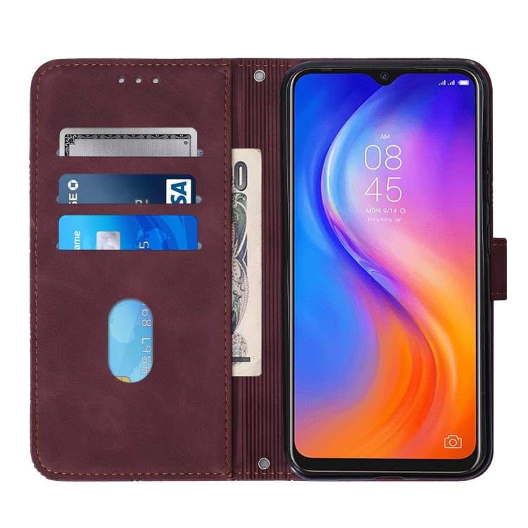 Funda Telefónica Crossbody 3D Flip para Tecno Spark 5 Air y Spark 6 Air (Rojo del Vino)