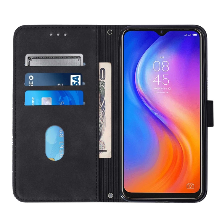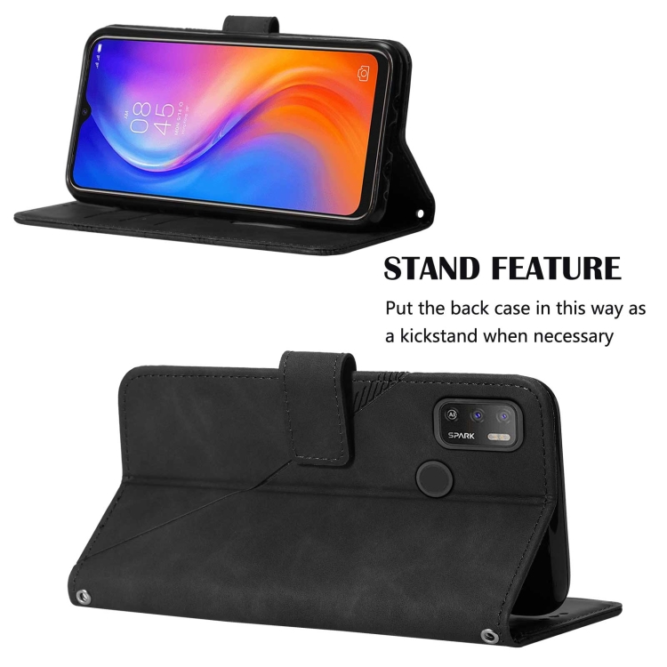 Funda de Cuero con Goma En Relieve para Tecno Spark 5 Aire y Spark 6 Air Crossbody (Negro)