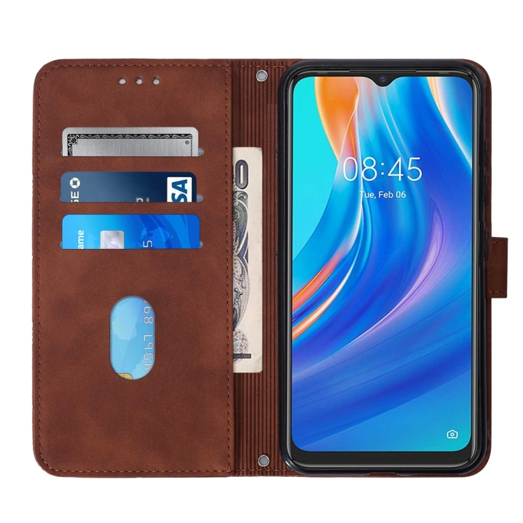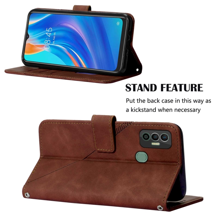 Funda para Tecno Spark 7 Crossbody 3D Cuero con Goma En Relieve (Marrón)