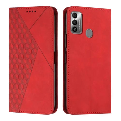 Funda de Teléfono Tecno Spark 7 Diamond Splicing Cuero Magnético (Rojo)