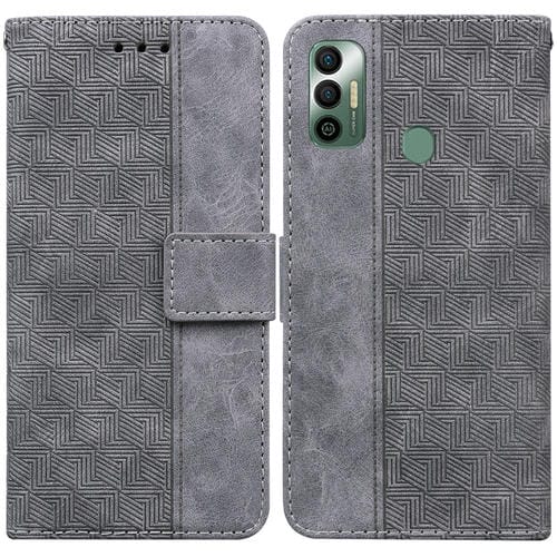 Funda de Cuero geométrico para Tecno Spark 7 (Gris)