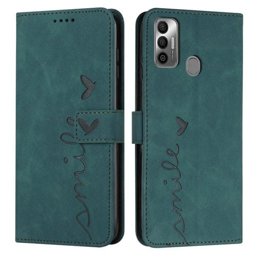 Funda para Tecno Spark 7T y Spark 7 Skin Feel Corazón Patrón de Cuero (Verde)