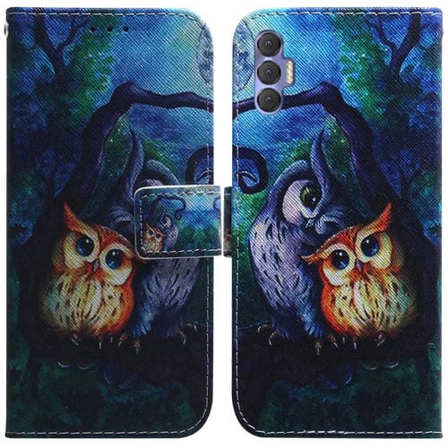 Funda de Cuero para Tecno Spark 8 Pro Colored Drawing Búho de Pintura al Óleo