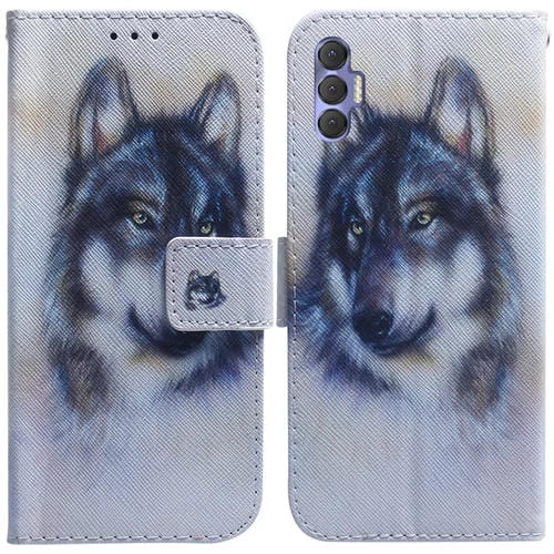 Funda de Cuero para Tecno Spark 8 Pro Colored Drawing (White Wolf)