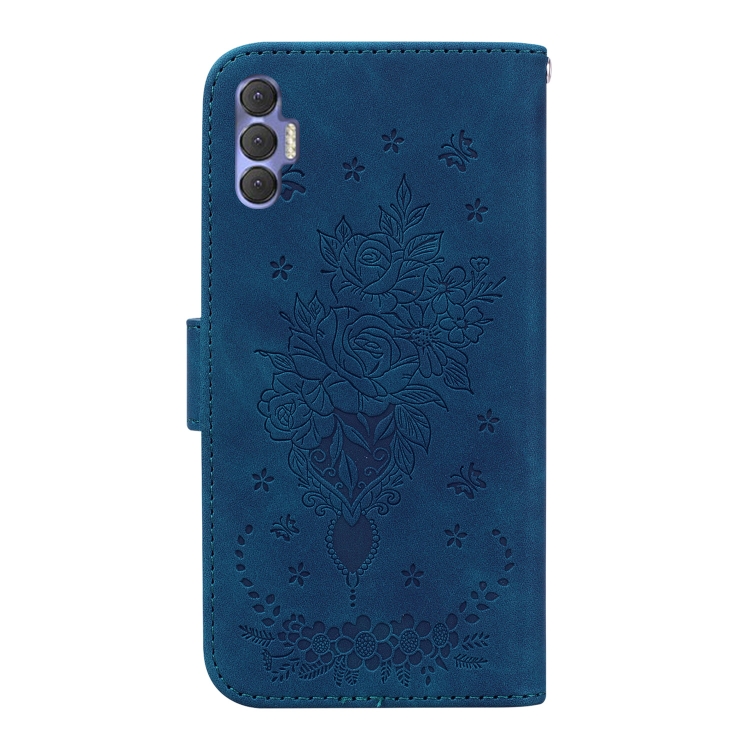 Funda para Tecno Spark 8P Butterfly Rose Foothip en Relieve de Cuero (Azul)