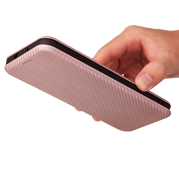 Funda para Tone E21 Fibra de Carbono Textura Magnética Horizontal Flip TPU + PC con Cuero PU y Ranura para Tarjeta (Rosa)