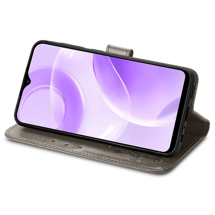Funda de Cuero para Ulefone Note 15 con Hebilla en Relieve y Cierre de Cuatro Hojas (Gris)