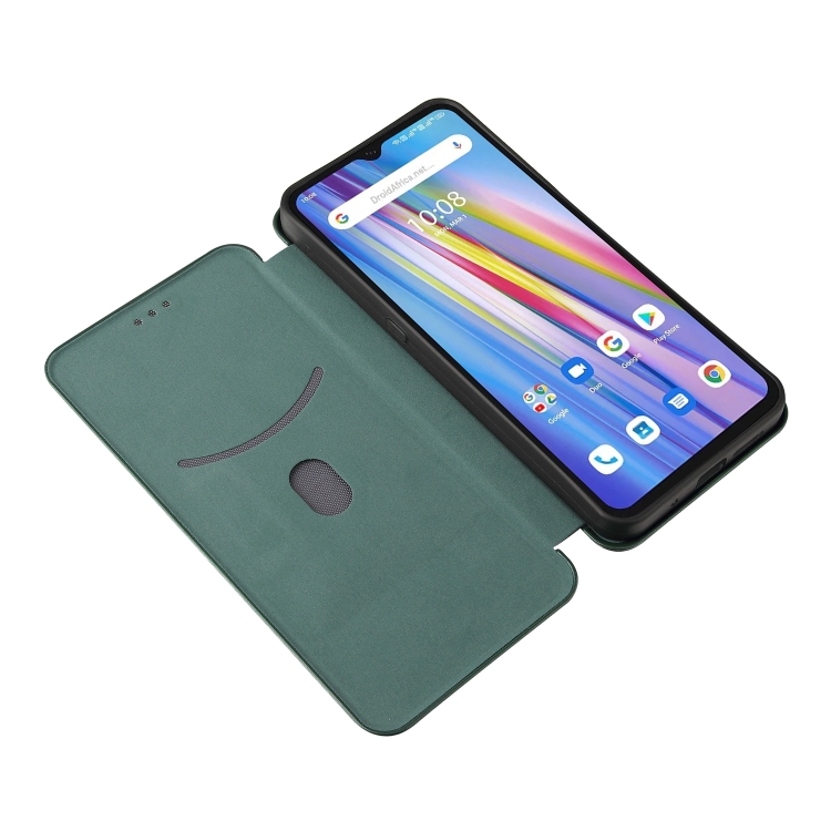Funda para Umidigi A11 Fibra de Carbono Textura Magnética Horizontal Flip TPU + PC + Cuero PU con Ranura para Tarjeta (Verde)