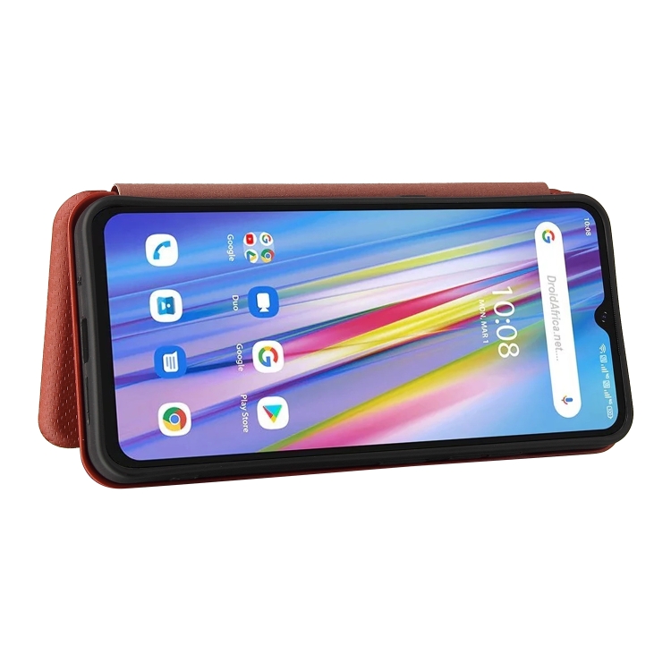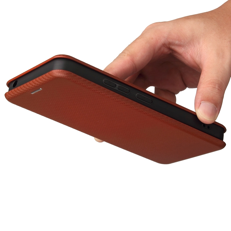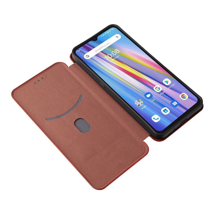 Funda para Umidigi A11 Fibra de Carbono Textura Magnético Horizontal Flip TPU + PC con Ranura para Tarjeta (Marrón)