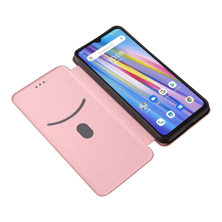Funda para Umidigi A11 Textura Fibra de Carbono Magnético Horizontal Flip TPU PC Cuero Pu con Ranura para Tarjeta (Rosa)