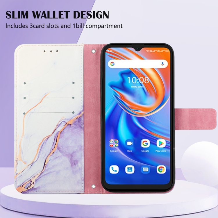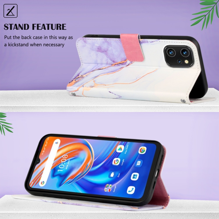 Funda de Cuero con Tapa para Umidigi A13/A13 Pro/A13S Pt003 Patrón Mármol (Blanco Púrpura)