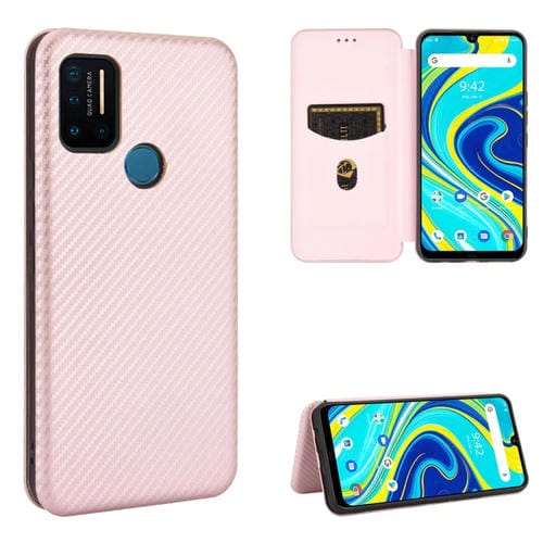 Funda para Umidigi A7 Pro de Cuero con Textura Fibra de Carbono Magnética y Tapa Horizontal TPU + PC + PU (Rosa)