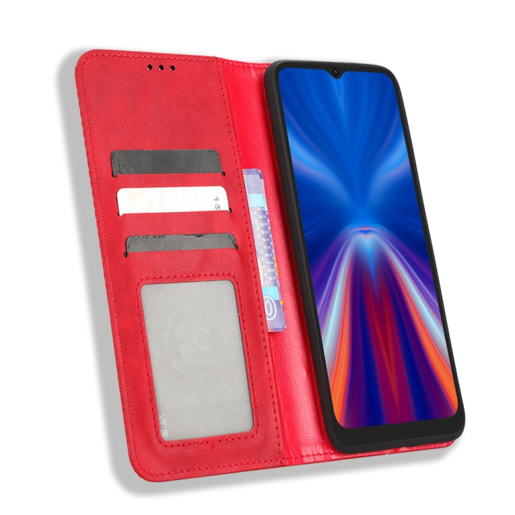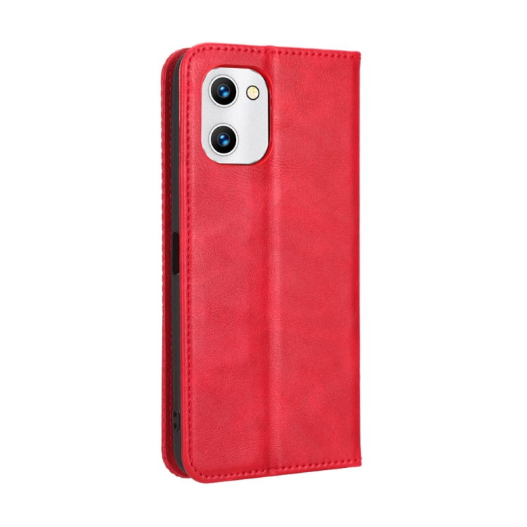 Funda para teléfono Umidigi C2 C1 C1 Max cuero textura retro hebilla magnética (Rojo)