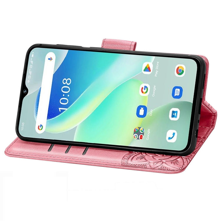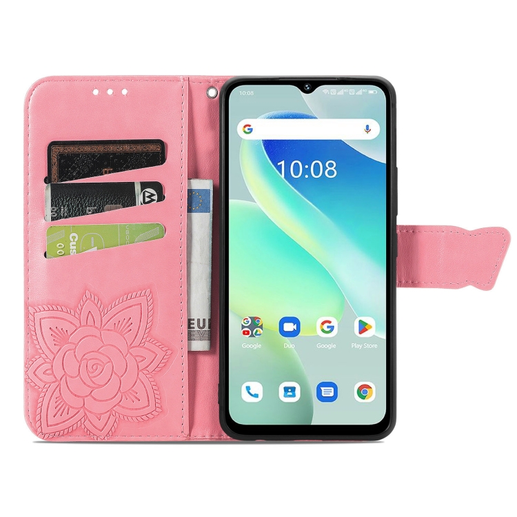 Funda de Cuero para Umidigi G5 Butterfly Love Flower con Relieve (Rosa)