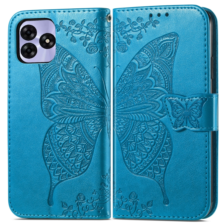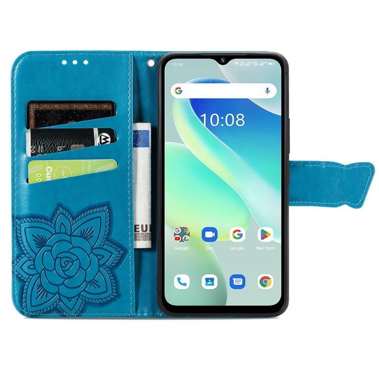 Funda de Cuero Umidigi G5 Butterfly Love Flower en Relieve para Teléfono (Azul)