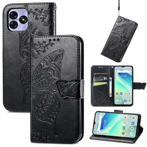 Funda de Cuero Umidigi G5 Butterfly Love Flower en Relieve para Teléfono (Negro)