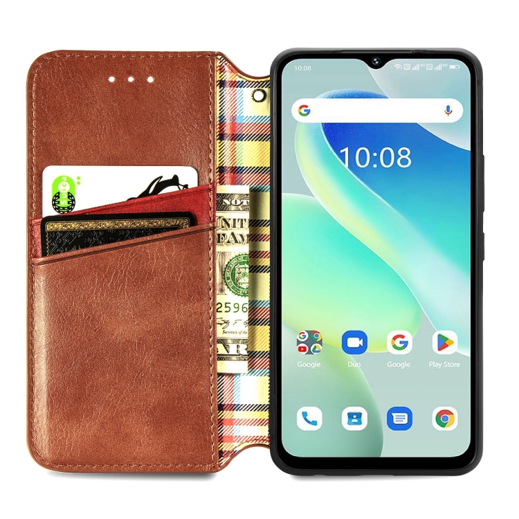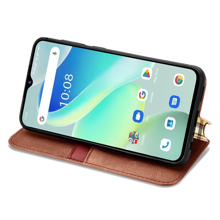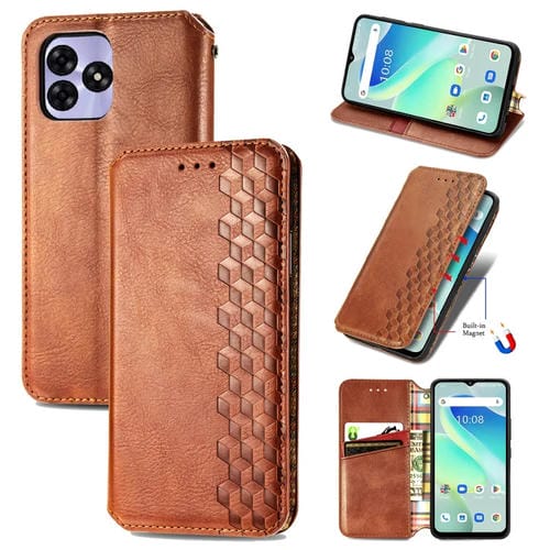 Funda de Cuero Magnético para Umidigi G5 Cubic Grid (Marrón)