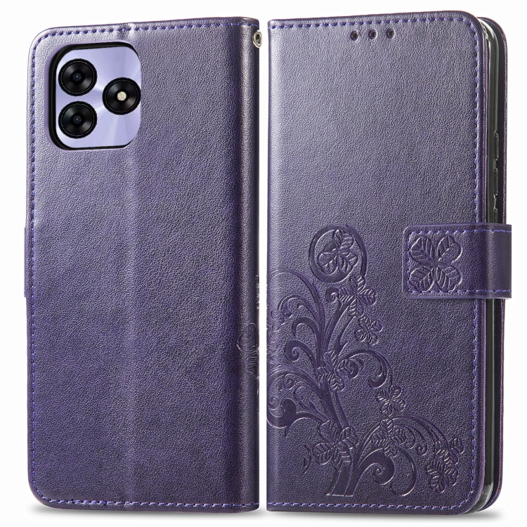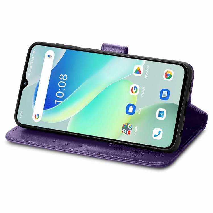 Funda de Cuero para Umidigi G5 con Hebilla en Relieve y Cierre de Cuatro Hojas (Púrpura)