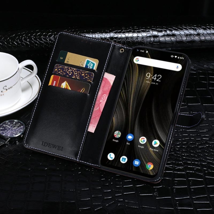 Funda de Cuero para Umidigi Power 3 Idewei con Tapa Horizontal, Soporte, Ranuras para Tarjetas y Billetera (Azul Oscuro)