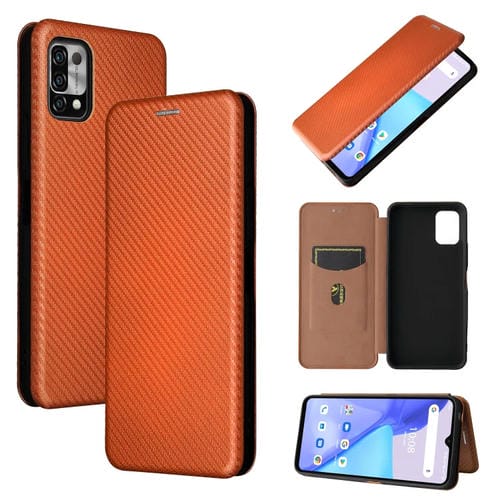 Funda para Umidigi Power 5 Textura Fibra de Carbono Magnética Flip TPU + PC Cuero Pu con Ranura (Marrón)