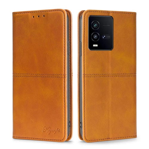 Para Vivo Iqoo 10 Funda de Teléfono de Cuero Magnético con Textura de Vaca (Marrón Claro)