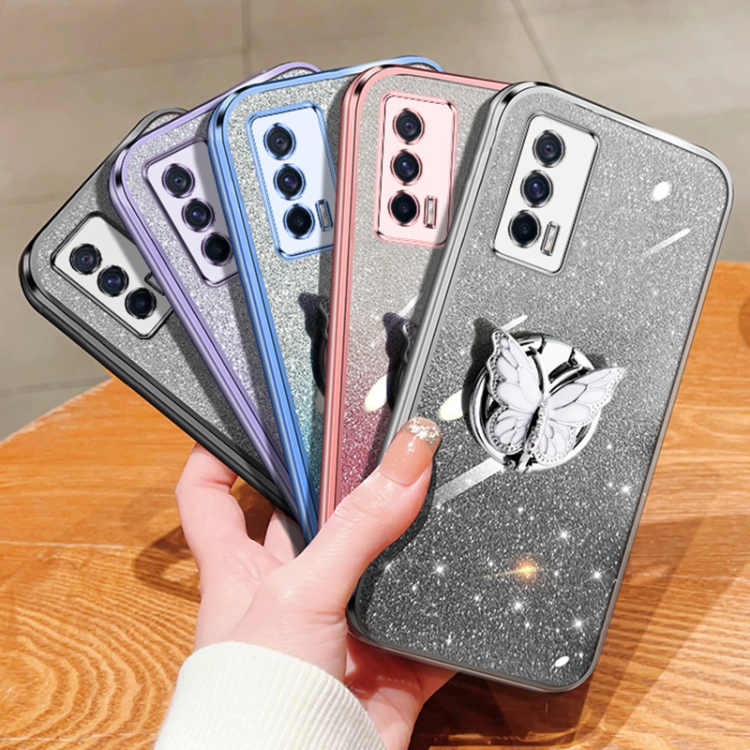 Para Vivo Iqoo Neo5 Funda para Teléfono de TPU con Soporte de Mariposa con Brillo Degradado Plateado (Azul Sierra)