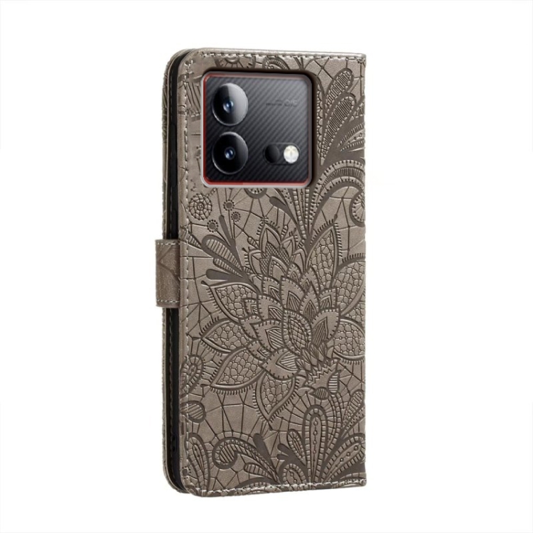 Para Vivo Iqoo Neo8 Funda para Teléfono de Cuero con Tapa y Estampado de Flores de Encaje (Gris)