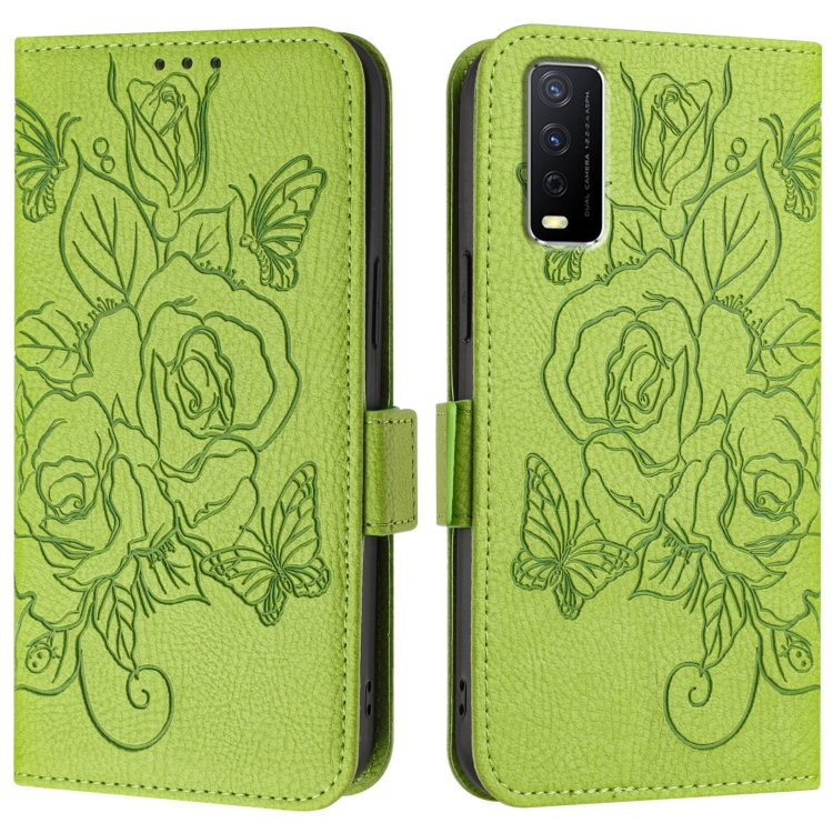 Para Vivo Iqoo U1X / Y20A / Y20G Funda para Teléfono de Cuero Antirrobo Rfid con Rosa En Relieve (Verde)