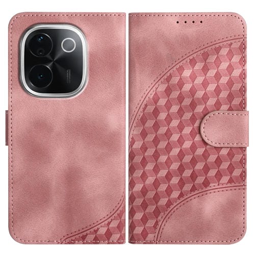 Para Vivo Iqoo Z9S Pro / T3 Pro 5G India Yx0060 Funda de Cuero para Teléfono con Relieve de Cabeza de Elefante y Cordón (Rosa)