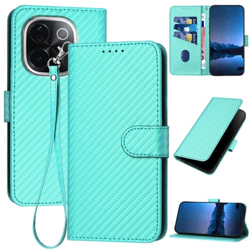 Funda de Cuero con Hebilla de Fibra de Carbono y Cordón para Vivo Iqoo Z9S Pro / T3 Pro 5G India Yx0070 (Azul Claro)