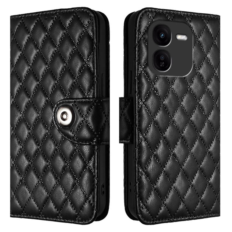 Para Vivo Iqoo Z9X Funda para Teléfono de Cuero con Tapa con Textura Rómbica y Cordón (Negro)