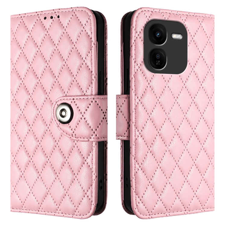Para Vivo Iqoo Z9X Funda para Teléfono de Cuero con Tapa con Textura Rómbica y Cordón (Rosa)