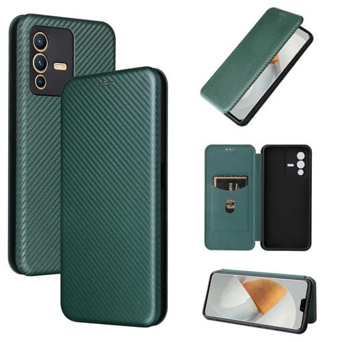 Para Vivo S12 5G / V23 5G Caja de Teléfono de Cuero Magnético con Textura de Fibra de Carbono (Verde)