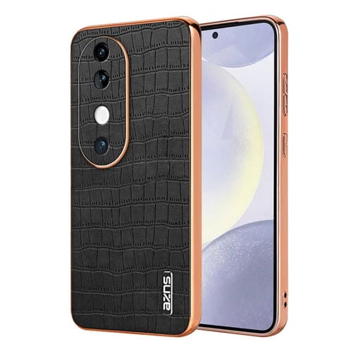 Para Vivo S19 Azns Estuche para Teléfono con Textura de Cocodrilo y Marco Galvanizado (Negro)