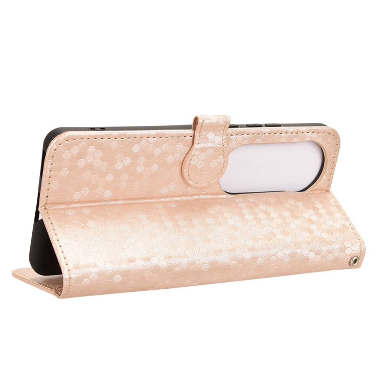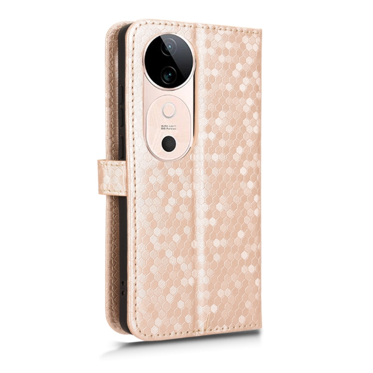 Para Vivo S19 Funda de Cuero con Textura de Punto de Panal (Dorado)