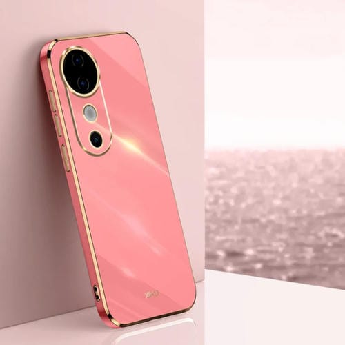 Para Vivo S19 Xinli Caja de Teléfono de TPU con Borde Dorado y Revestimiento Recto 6D (Rojo Espino)