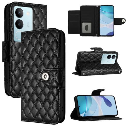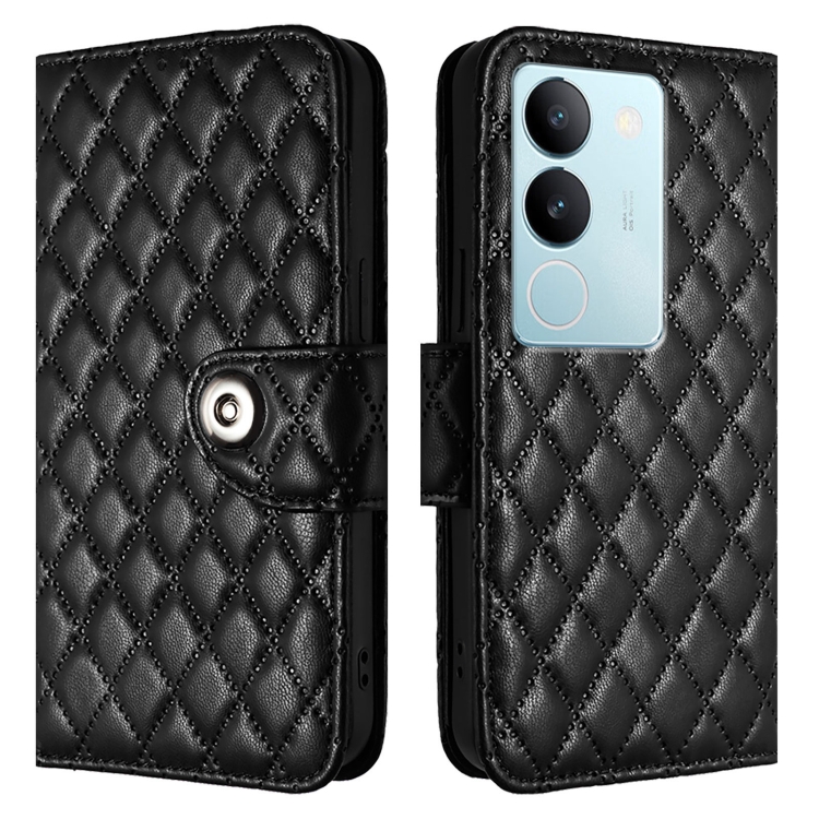 Para Vivo V29 / V29 Pro Funda para Teléfono de Cuero con Tapa con Textura Rómbica y Cordón (Negro)
