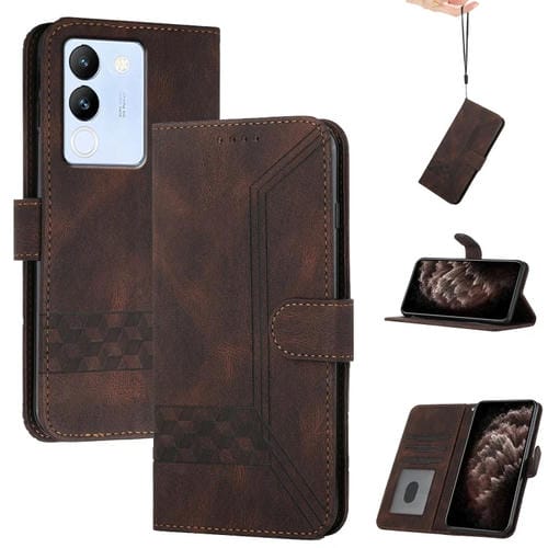 Para Vivo V29E 5G Global / Y200 5G Global Cubic Skin Feel Funda de Cuero con Tapa para Teléfono (Marrón)