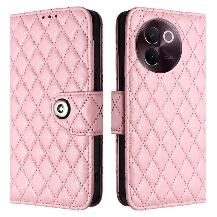 Para Vivo V30E Funda para Teléfono de Cuero con Tapa con Textura Rómbica y Cordón (Rosa)