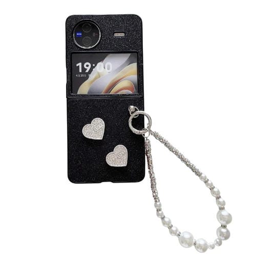 Para Vivo X Flip Gradient Color Glitter Funda Protectora para Teléfono a Prueba de Golpes con Cadena de Cuentas (Negro)
